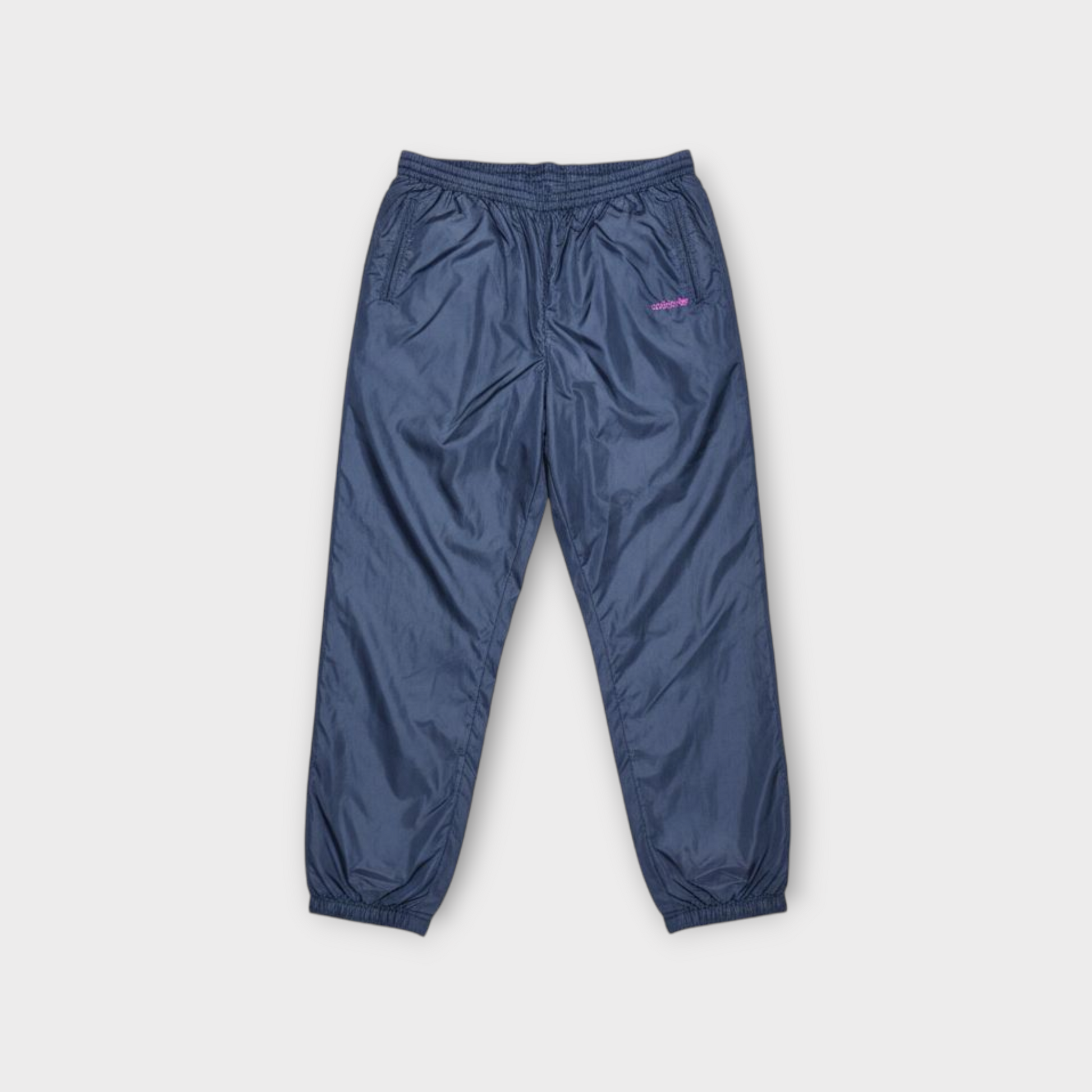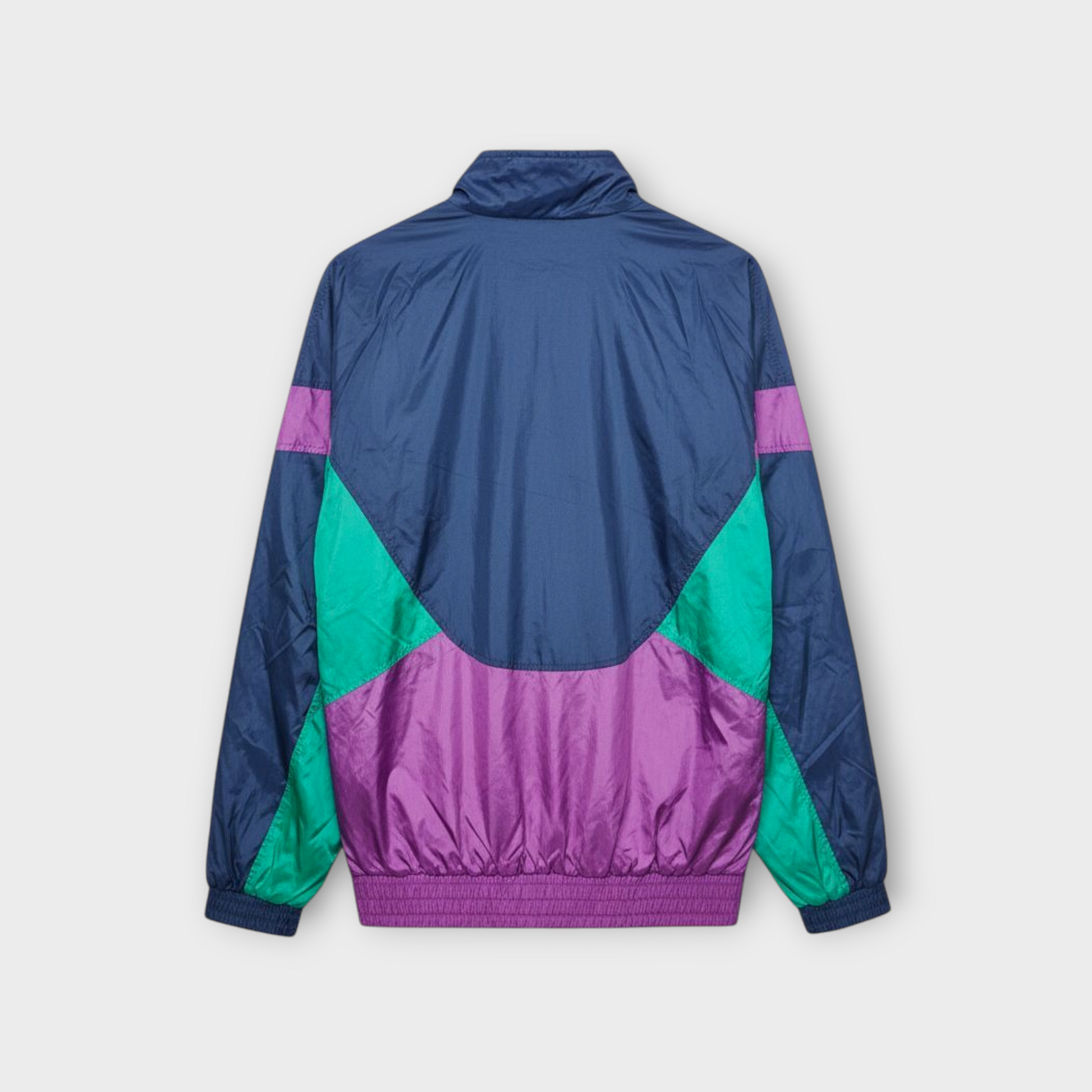 Original Adidas vintage tracksuit from the early 90s in a bold navy, purple, and green colorway. Iconic retro design with lightweight nylon fabric and the trefoil embroidery on both jacket and pants. Collectible one-of-a-kind set — no restocks.