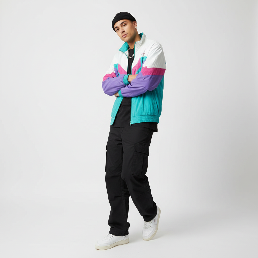 Adidas Originals Track Jacket Vintage Windbreaker 90s – White/Turquoise/Purple (L)